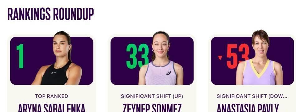 网球联赛,ATP赛程,WTA积分,网球直播入口,网球世界排名,四大满贯赛/实时更新全球网球联赛2025赛程、比分、排名及直播,全面覆盖ATP男子联赛、WTA女子赛事、四大满贯及国内网球比赛,为中文网球迷提供权威资讯与竞猜预测支持。这一期的WTA排名出来了! 谁能想到,澳网一场决赛打完,世界前十的格局直接被搅了个天翻地覆。 莱巴金娜,就是那个发球像炮弹、表情冷得像冰的哈萨克斯坦姑娘,三盘恶战掀翻世界第一萨巴伦卡,硬生生把澳网冠军杯抢到手不说,排名一口气冲回世界第三!